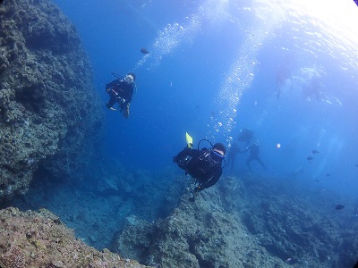 はいさーい!今日も沖縄は雨模様!本日は青の洞窟ファンダイビングに行ってきました!リクエストのジンベイツアーが中止になり何とか真栄田岬でダイビング!海況は穏やかでのんびり2ダイブ!お二人はベテランダイバーなので余裕の泳ぎ、体験ダイバーをよけながら薄暗い洞窟を満喫!次回はジンベイザメツアーのリベンジしてくださいね!